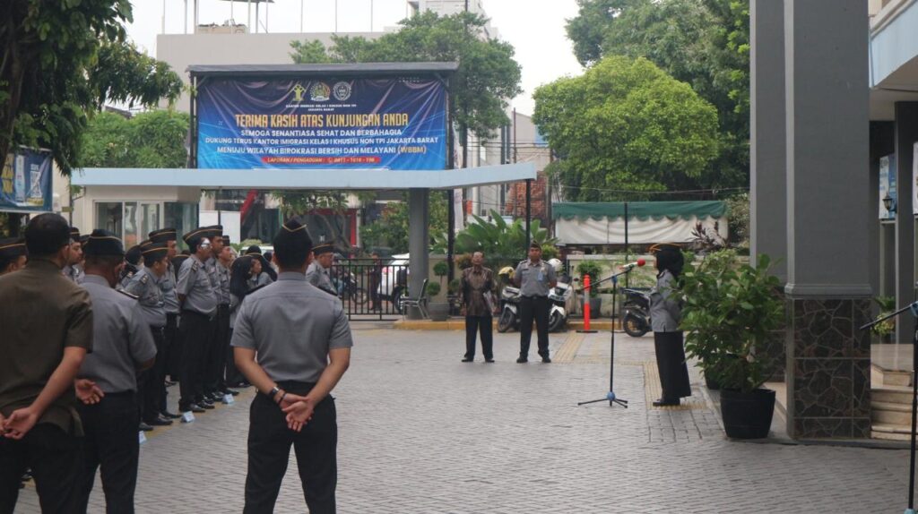 Jakarta, 5 Februari 2024 – Kantor Imigrasi Kelas I Khusus Non-TPI Jakarta Barat mengadakan apel pagi yang dipimpin oleh Kepala Bagian Tata Usaha, Indra Aguswanti. Agenda apel kali ini sekaligus dengan penghargaan purnabakti kepada seorang pegawai yang telah menyelesaikan masa tugasnya, sebuah penghormatan atas dedikasi yang diberikan selama bertahun-tahun dalam layanan keimigrasian.